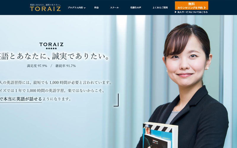 具体的なスクールのお話をすると、TORAIZという英会話スクールになります。